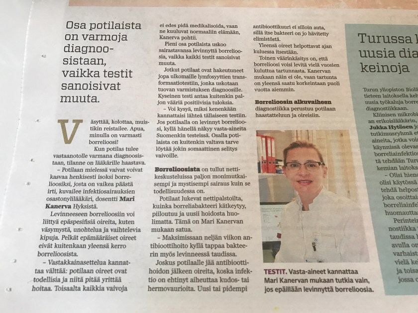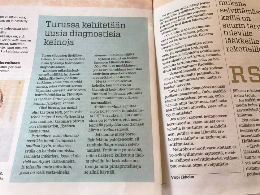 Mediuutiset-lehdessä oli harvinaisen selkeää tekstiä borreliasta, tuosta pelätystä ja mystisestä punkkien levittämästä sairaudesta. (Kuvat suurenevat niitä klikkaamalla).