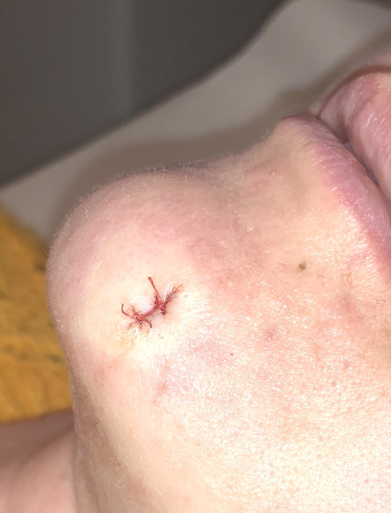 Pieni kirurginen poisto ja kaksi itsestään sulavaa ommelta.