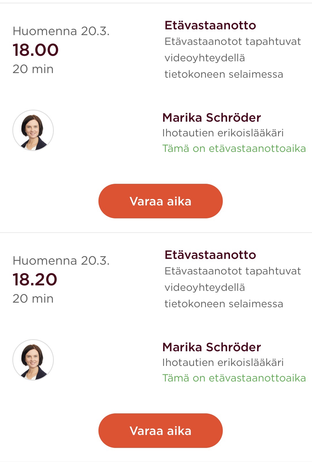 Etävastaanottoaikoja löytyy myös iltaisin.